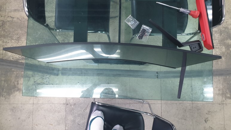 먼저 스탠드 몸체를 패널에 연결하고 스탠드 다리 순으로 조립하시면 됩니다.