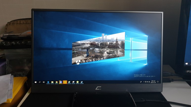 포터블 제품이지만 크기 비교를 위하여 24인치 모니터 옆에 설치하여 보았습니다.